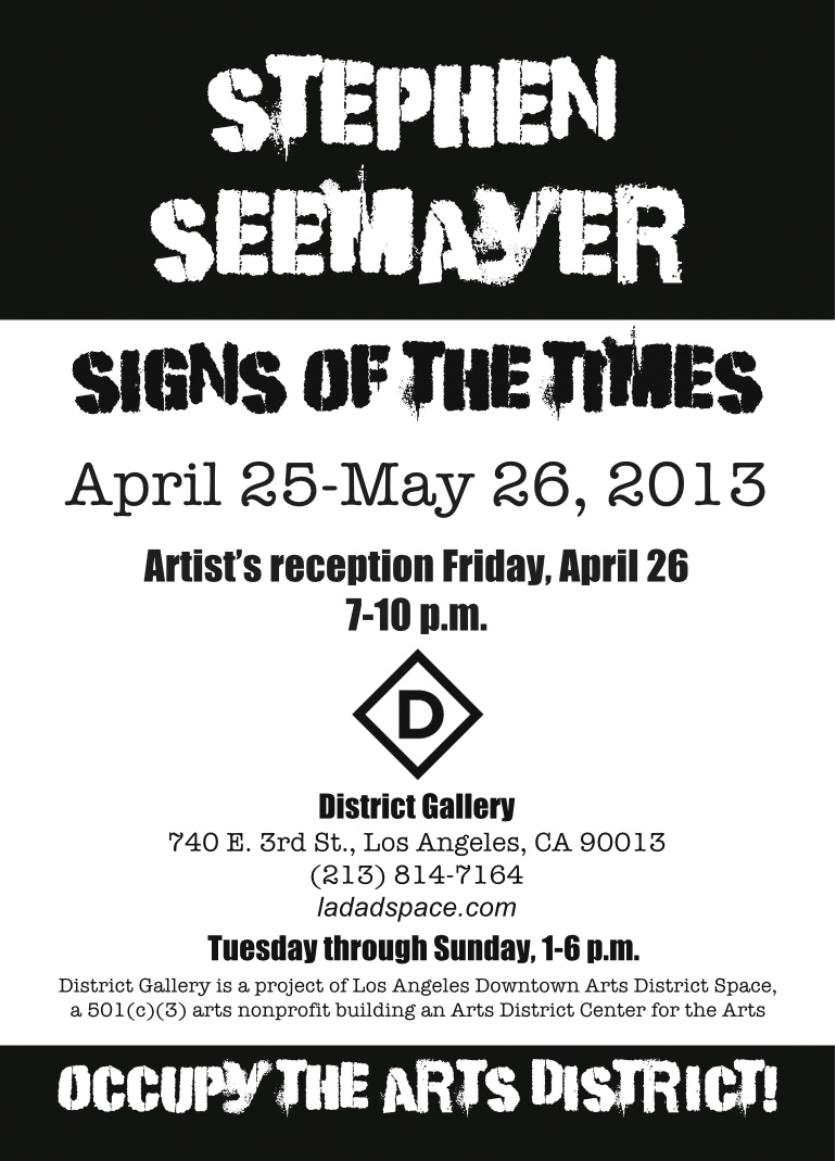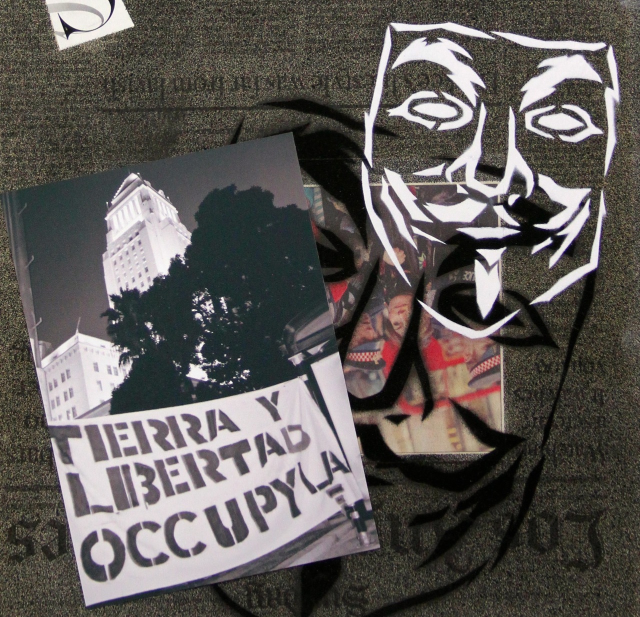 Each piece in Stephen Seemayer’s new show of artworks at District Gallery in Downtown L.A. is built on a reconstructed front page of the Los Angeles Times from each day of Occupy L.A.